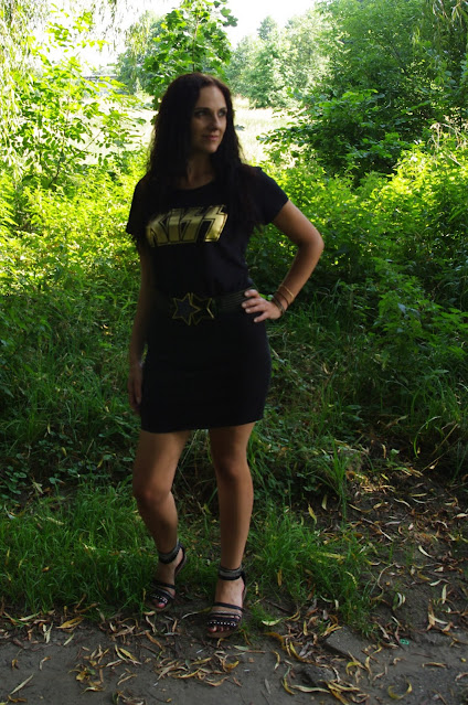 Idąc za ciosem, dobór pozostałych fotek też nie jest przypadkowy. Koszulka ze zdjęć też została zakupiona w... Biedronce. Jakieś 7 czy 8 lat temu. Zawsze żartowałam, że to elegancki wariant koszulki z zespołem i nieraz zdarzyło mi się ją założyć do biura pod żakiet. Tym razem w wersji letniej. I po tych śnieżnych dniach, jakie nam ten kwiecień serwuje, już się nie mogę doczekać, kiedy wreszcie będzie pogoda na krótki rękaw. :)