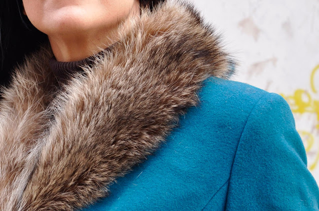 Kolejne zdjęcia zimowe, które zapodaję tutaj, zanim nas maj przywita. Bo jednak ten futrzany kołnierz (tym razem nie jest dołożony przeze mnie, jest "na stałe") za chwilę będzie prezentował się zbyt brutalnie. Rzadko pojawia się u mnie turkus w zdjęciach zimowych. Teraz będzie gościł częściej, w wiosennej i letniej odsłonie. :)