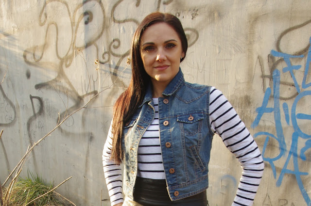 Jeansowa katana, bluzka w paski i kowbojki. Czyli taki klasyk. Fotki zrobione dwa lata temu. Chyba wczesną wiosną, bo jeszcze zieleni nie widać. :)